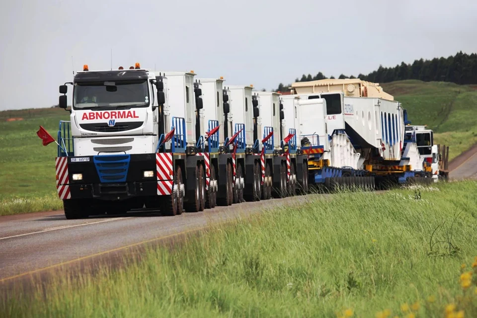 Эта немаленькая машина длиной 11 м, шириной 3,5 м и высотой 4,7 м имеет колесную формулу 10х10 оснащается турбодизельным двигателем мощностью 950 л. с. Он может работать в составе автопоезда полной массой до 900 т. На ролике показано как несколько таких машин перевозятся огромный трансформатор.