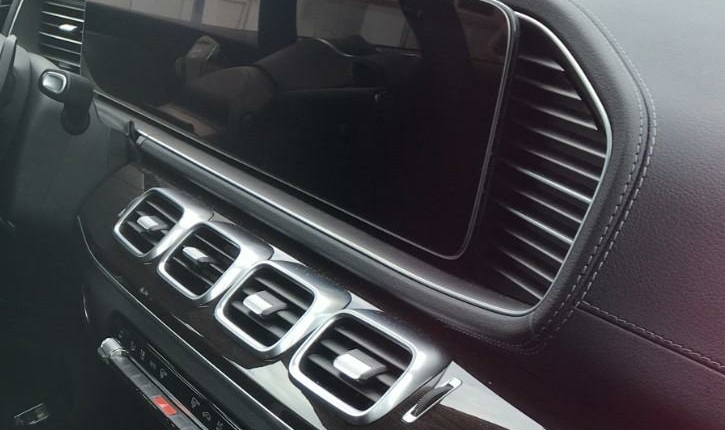 Фото интерьера Mercedes-Benz GLE подтверждают информацию из предыдущих утечек. Приборная панель действительно представляет некий симбиоз таковой из концепта Vision Mercedes-Maybach Ultimate Luxury с идеями интерьера S-Class: «нависающая» панель отделана цельным куском дерева, в котором проделаны четыре отверстия вентиляционной системы.