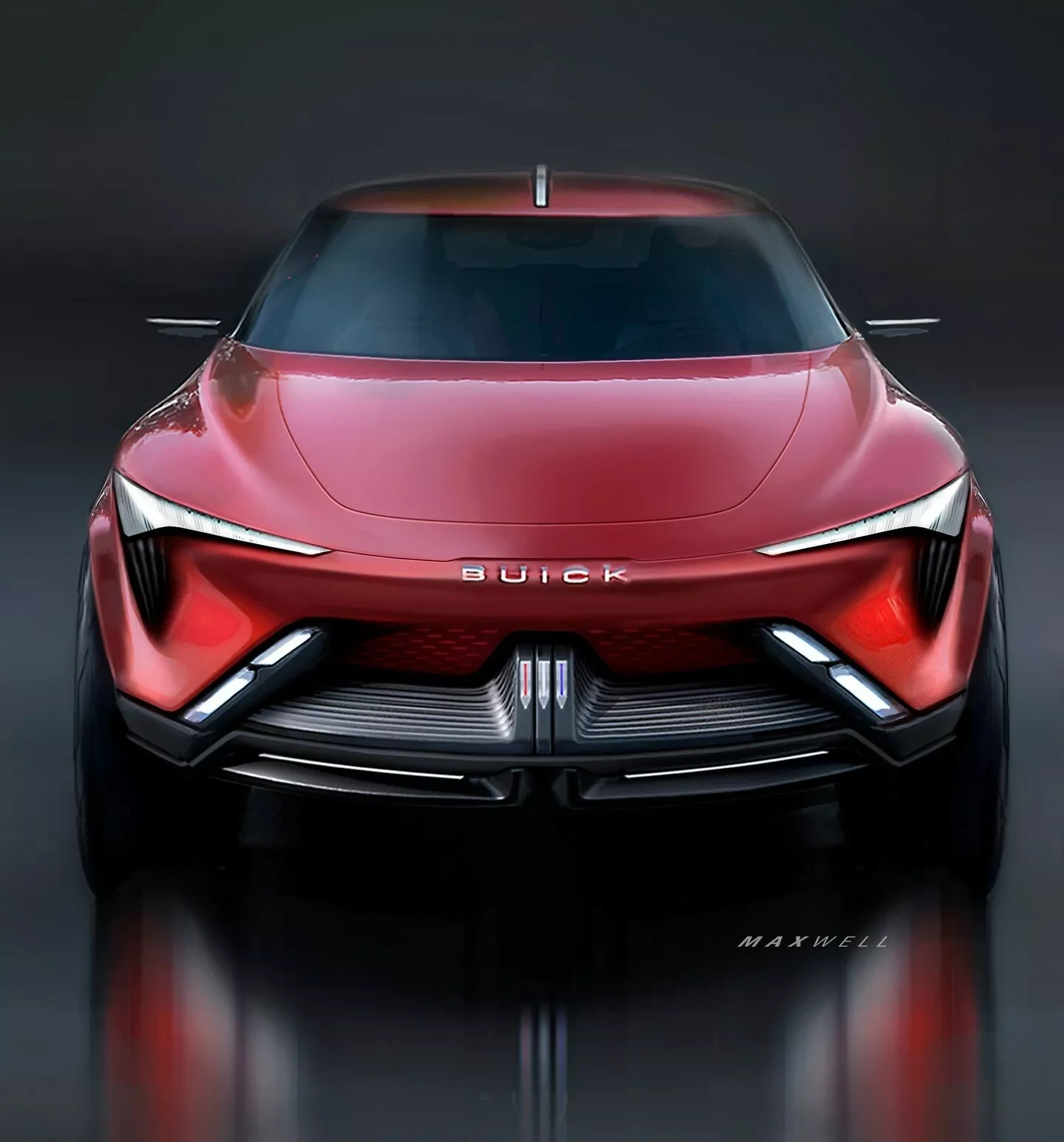 Другий ескіз демонструє яким би міг бути новий Buick у версії Максвелла Саллівана (Maxwell Sullivan), креативного дизайнера екстер'єру в GM. У автомобіля на фото втоплена радіаторна решітка з червоними акцентами у колір кузова. Її глибину дизайнер підкреслив масивною чорною вставкою у нижній частині із трьома центральними вертикальними смугами з кольоровими стрілками та встановленими по діагоналі світлодіодними денними ходовими вогнями. Над усією цією конструкцією височить логотип марки. Не менш оригінально виглядають основні фари, візуально об'єднані із «раковинами» повітрозабірників.