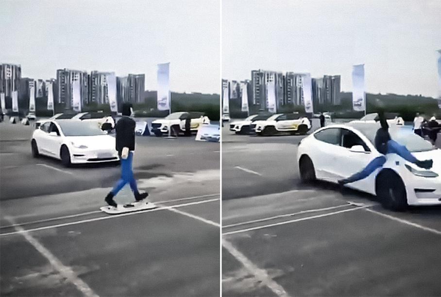 Відео демонстративного заїзду з’явилося в мережі. На ньому наочно показана робота системи екстреного гальмування електромобіля. Всупереч всім очікуванням, Tesla Model 3 не гальмує перед манекеном, а збиває його. Причому удар був такої сили, що лялька розлетілася на шматки, змоделювавши можливий сценарій з реальним пішоходом.
