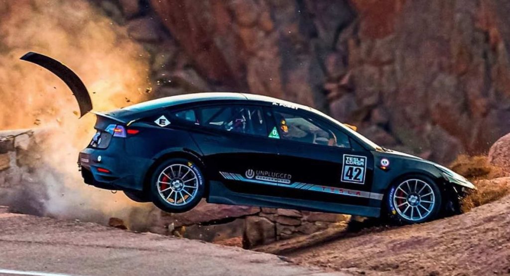 В этом году в восхождении на холм Pikes Peak планировали принять участие три гоночных Tesla Model 3. Две из них «сошли с дистанции» еще до начала гонки. Видео одного из закончившихся неудачей тестовых заездов опубликовала компания Unplugged Performance.
