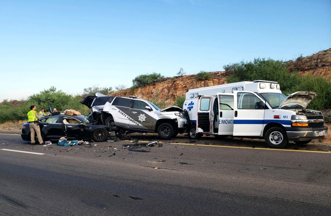 Інцидент стався в штаті Аризона. Електромобіль Tesla Model S врізався в поліцейське авто, яке у свою чергу зіткнулося зі швидкою. В аварії постраждала лише одна людина — водій Model S. Після аварії його доставили в лікарню, але зараз його життю нічого не загрожує.
