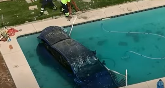 Як розповів інспекторам поліції водій, він їхав із дозволеною швидкістю вулицею, коли перед ним вискочив автомобіль. Він зробив маневр, щоб уникнути зіткнення, але не впорався з керуванням та влетів у паркан будинку. Пробивши огорожу домоволодіння, електрокар опинився в басейні.