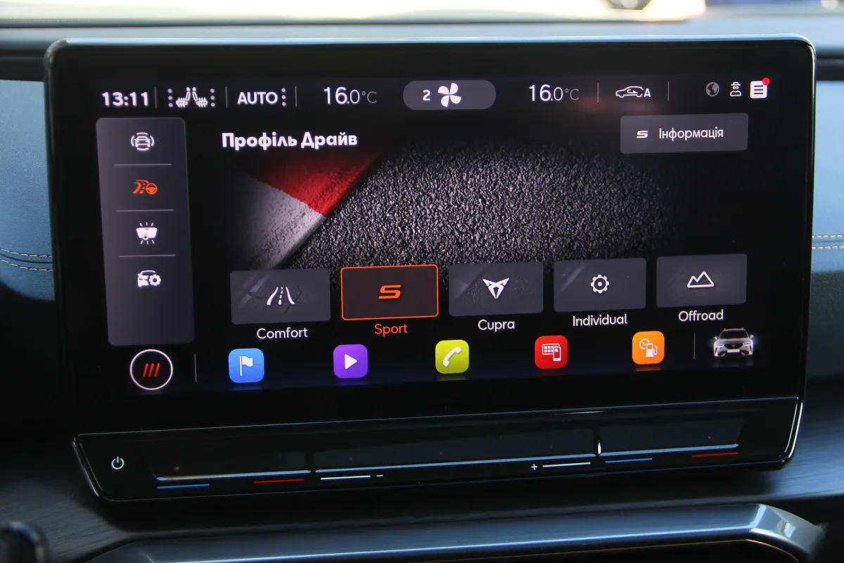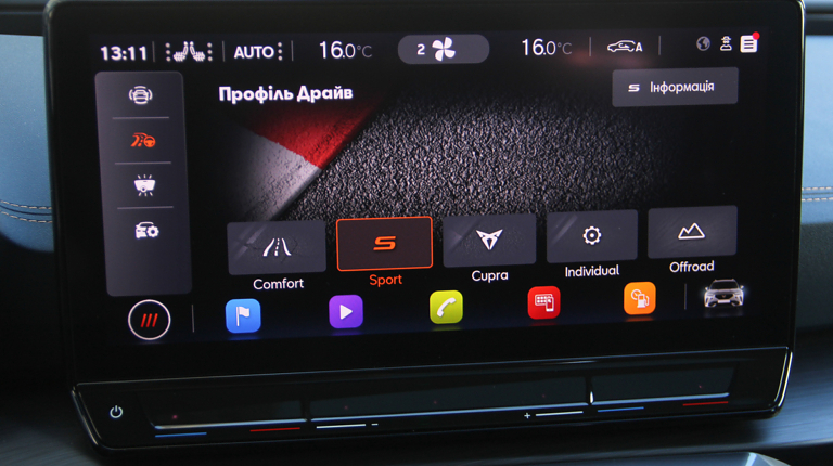 Цікаво відзначити і акустику – це Beats Audio by Dr. Dre на 9 динаміків та потужністю 340 Ватт. Саме цей бренд особисто мені раніше в автомобілях не зустрічався, але тут він показав себе цілком гідно, до того ж на нього покладено обов’язки щодо транслювання звуку двигуна залежно від обраного режиму. Чим він спортивніший (а крім звичного Спорту є також режим CUPRA), тим соковитіший звуковий супровід ви чуєте. Здається, що об’єм двигуна підростає літрів до п’яти, не менше! Втім, зовні звук мотора залишається тим самим.