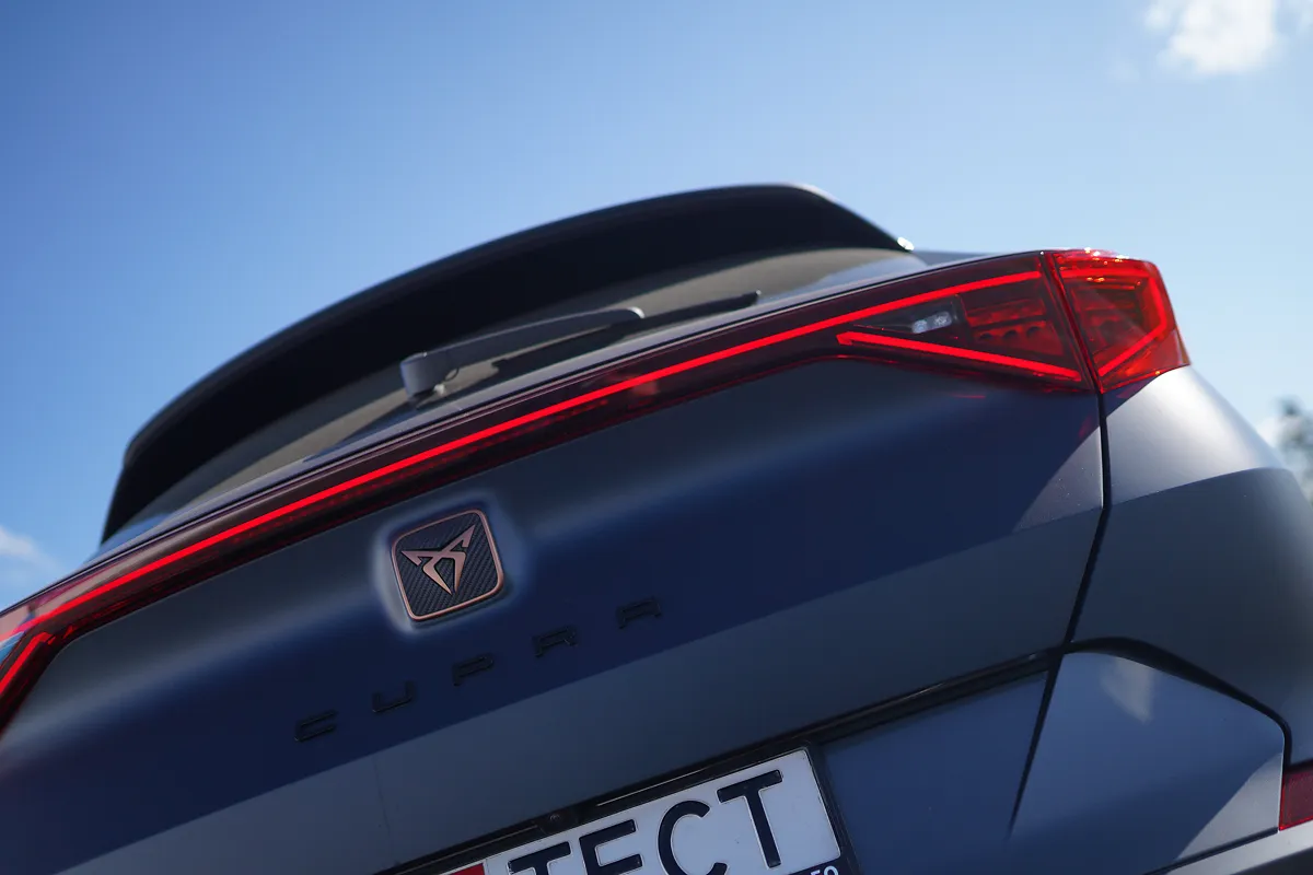 Динамічні пропорції автомобіля підкреслює візуальний акцент, зміщений у бік задньої частини автомобіля, завдяки чому капот здається значно довшим, ніж насправді. Передня частина Formentor легко впізнається завдяки великій решітці радіатора з мідною емблемою CUPRA і повністю світлодіодним фарам головного світла.