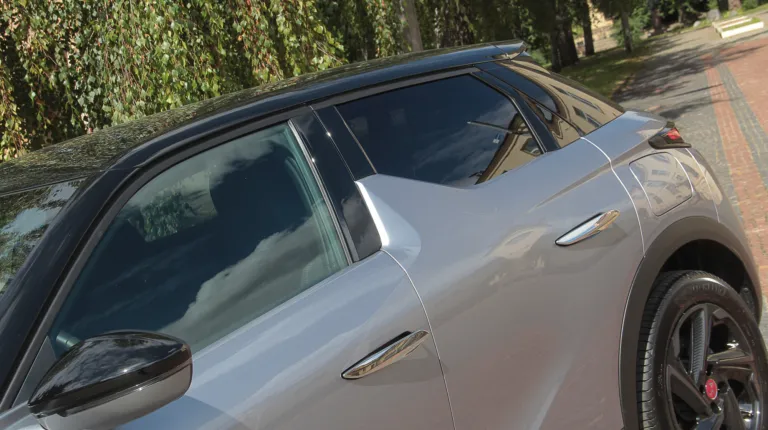 Первое впечатление вживую мало отличается от того, которое возникает от просмотра фотографий. Автомобиль вызывающе хвастается элементами дизайна, привлекая к себе внимание внимание окружающих. Что выглядит ярче – оптика, плавники задних дверей или поджатая корма? Так сразу и не скажешь. Но то, что перед ними новый французский бренд многие не понимают, с удивлением разглядывая именно логотипы и надписи на машине.
