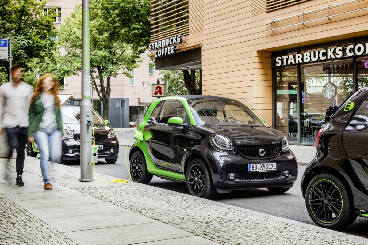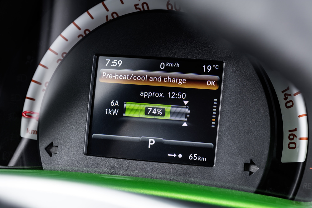 Електричний smart може заряджатися і від звичайної розетки, і від спеціального зарядного пристрою. Щоправда, для цього потрібно докупити другий кабель (машина комплектується одним). Це коштує 280 євро. Залежно від потужності зарядного пристрою відрізняється і час заряджання акумуляторної батареї smart. Якщо підключити машину до звичайної однофазної електромережі з силою струму 7 А, на процес повної зарядки знадобиться ціла ніч – 9,5 години. Щоб зарядити на 80%, достатньо і 6 годин. На спеціальних швидких зарядках справа піде швидше. Трифазна зарядка на 230В та 20 А впорається з цим завданням на 80% за 3 години. А якщо зарядний пристрій дає 32А, то лише за 45 хвилин. Таким чином, якщо протягом дня потрібно швидко поповнити заряд, 15-хвилинної зупинки на каву вистачить для половинної зарядки smart’а.
