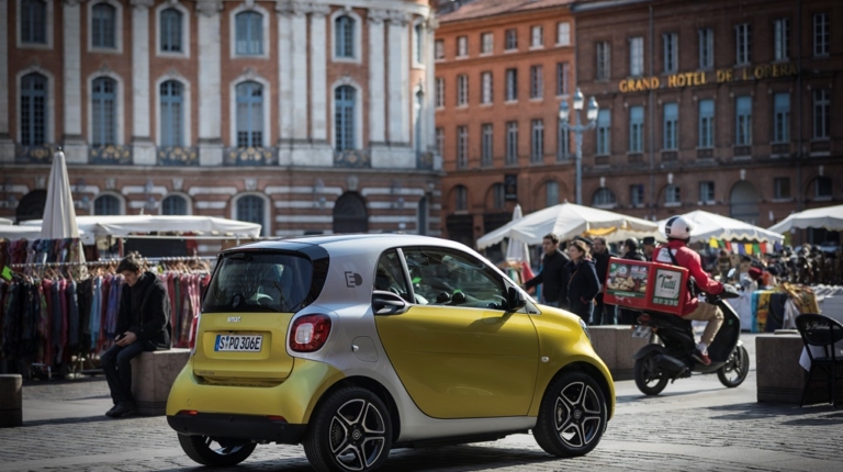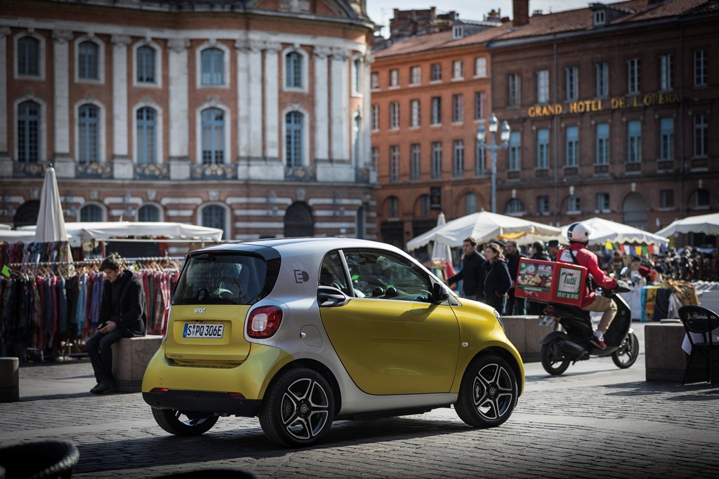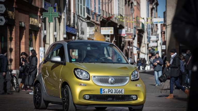 Тест-драйв нових smart ed проходив у французькій Тулузі – місті студентів, аерокосмічних технологій та дуже вузьких вуличок, які пішоходам доводиться ділити з автомобілями. Тут електричні smart’и дуже органічно вписуються в концепцію smart-міста і сусідство із собі подібними електричними легковиками і навіть маршрутками. А з радіусом розвороту в 7 метрів двомісний малюк може розвернутися на кожному п’ятачку. Особливо, якщо водієві допомагає камера заднього виду.