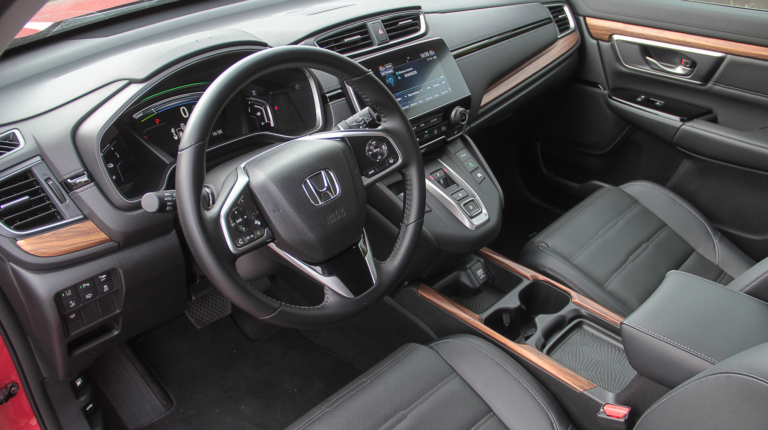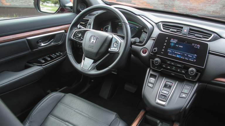 Главные новшества Honda CR-V Hybrid, конечно же, скрываются под капотом и глубоко внутри, так что в салоне тоже особых отличий нет. Но давайте все же бросим на него беглый взгляд!