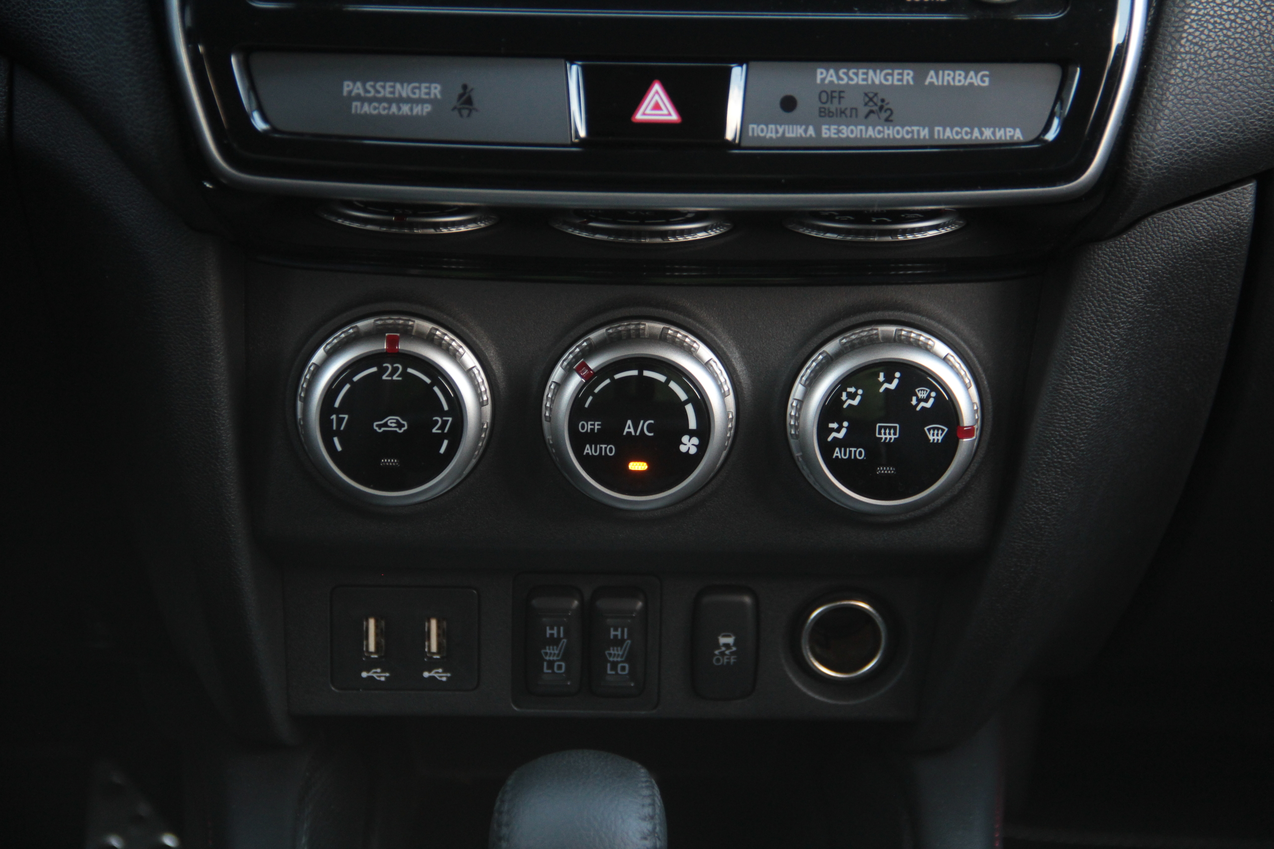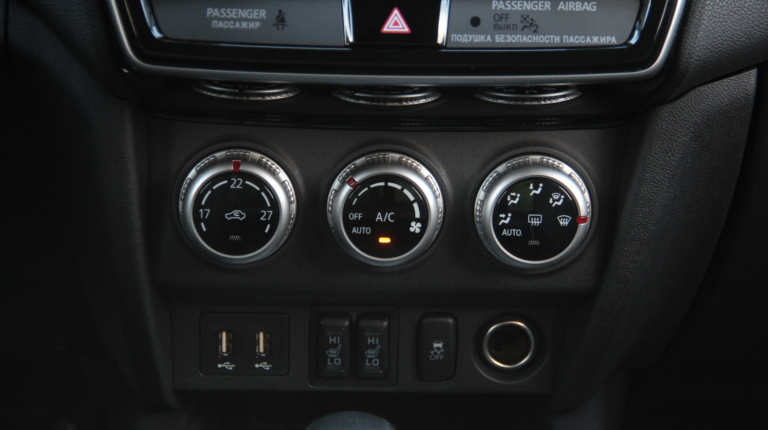Но это что касается блока мультимедиа, потому как остальные органы управления довольно традиционны – три шайбы климат-контроля, пресловутые кнопки подогрева сидений и отключения системы стабилизации. Чуть ниже, на центральном тоннеле еще одна, не менее важная. Это управление полным приводом, которое для водителя в ASX упростили максимально – нажатием одной кнопки перебираются режимы ее работы, включая распределение момента 50 на 50 между осями.