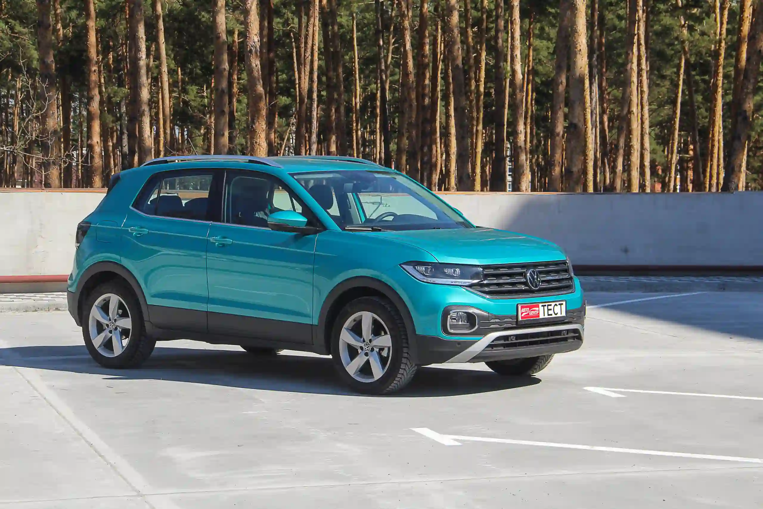 Из приметных деталей экстерьера стоит отметить разве что широкую третью стойку и сплошную перемычку между задними фонарями. Кстати задняя С-образная оптика весьма запоминающаяся и выглядит интереснее передней. А еще стоит замолвить слово о красивом бирюзовом цвете (его название Makena Turquoise), который, как оказалось, предлагается только для модели T-Cross. Возможно, со временем его получат и другие модели, но сейчас это настоящий эксклюзив. В салоне В салоне меня ждал приятный сюрприз - внутри кроссовер оказался просторнее, чем это казалось снаружи! Удобная посадка, вдоволь места надо головой на водительском месте (при росте 1,82), хорошая обзорность, не страдающая в угоду дизайну или из-за размера. Посадка здесь априори высокая, поэтому за рулем в потоке сразу чувствуешь себя увереннее.