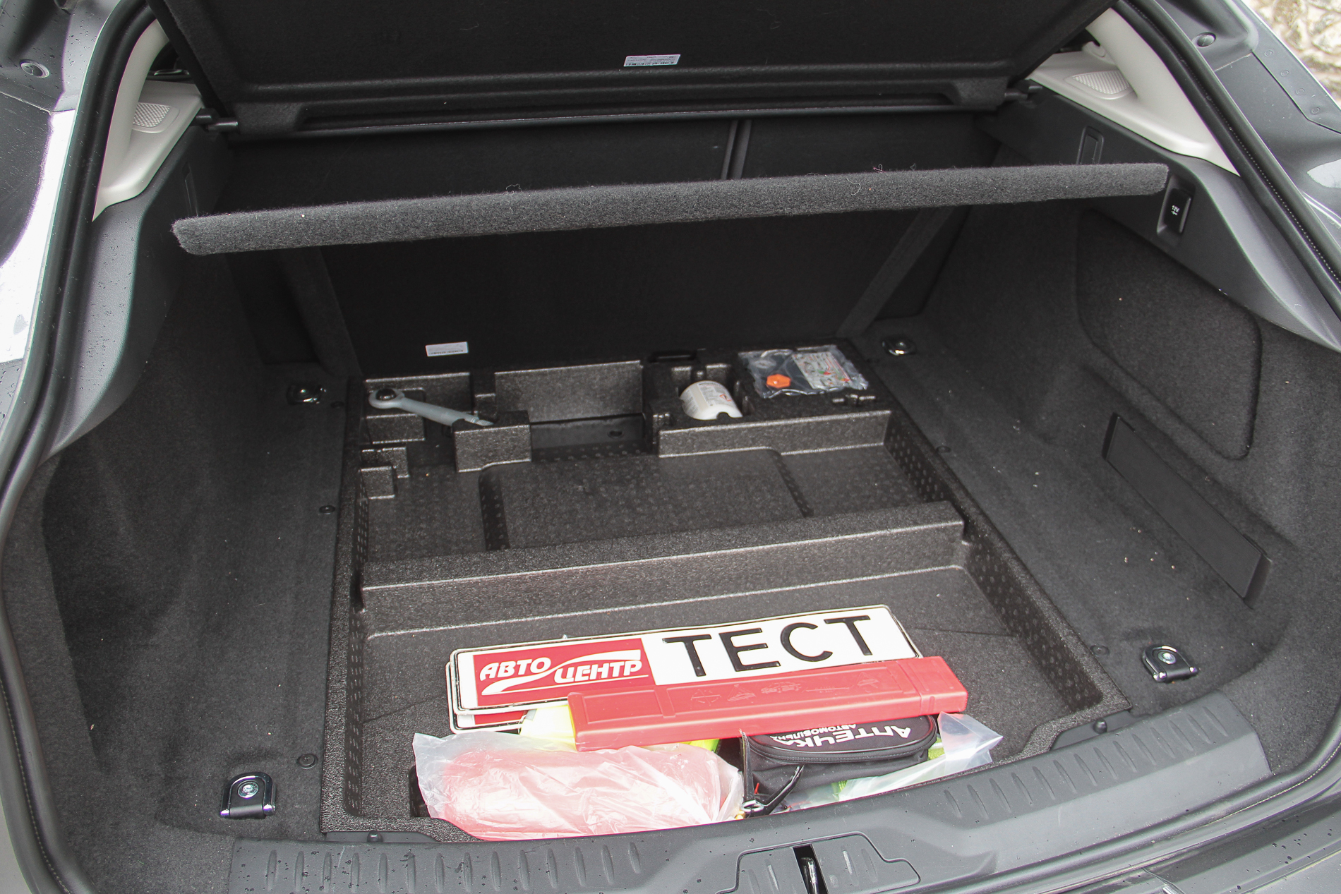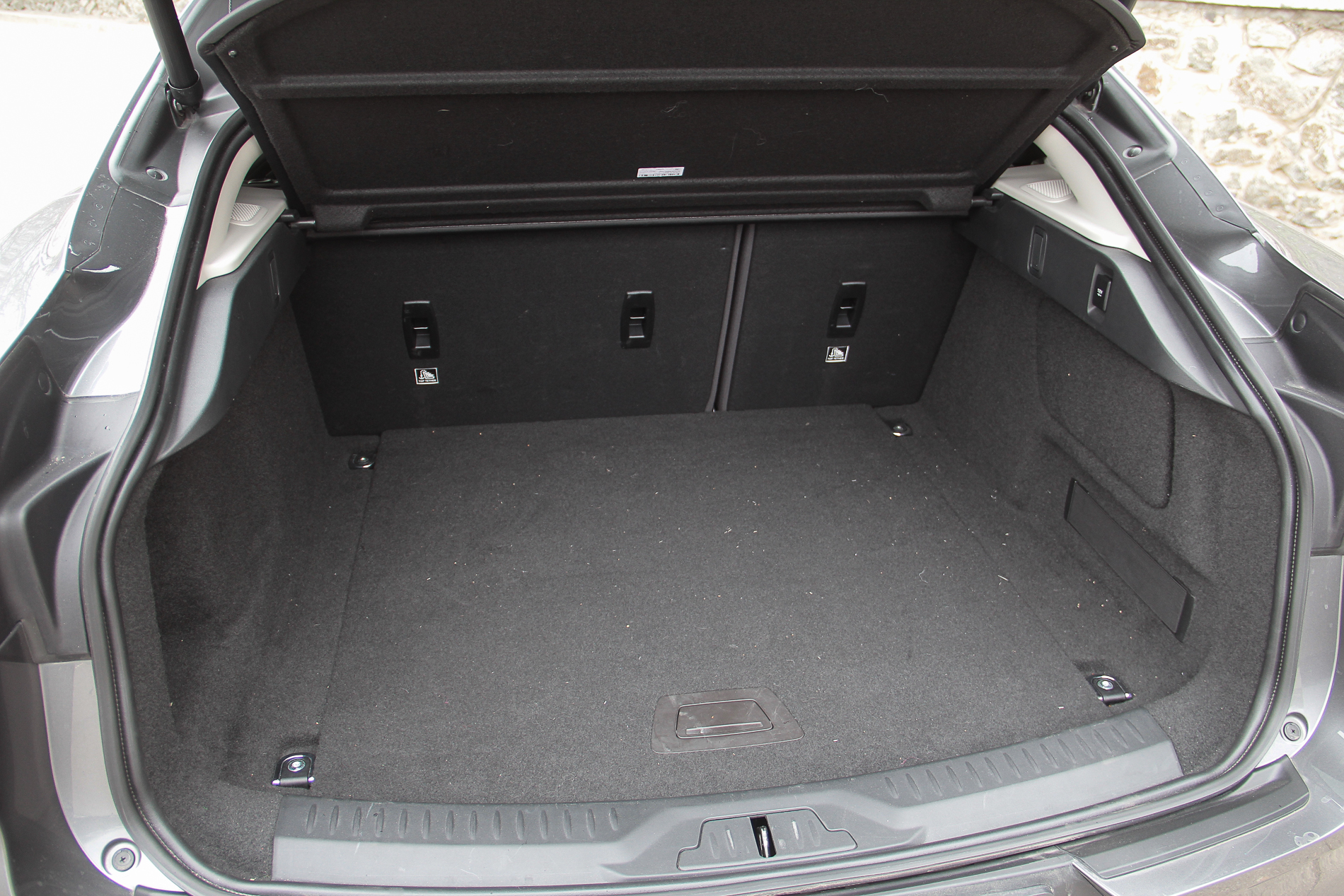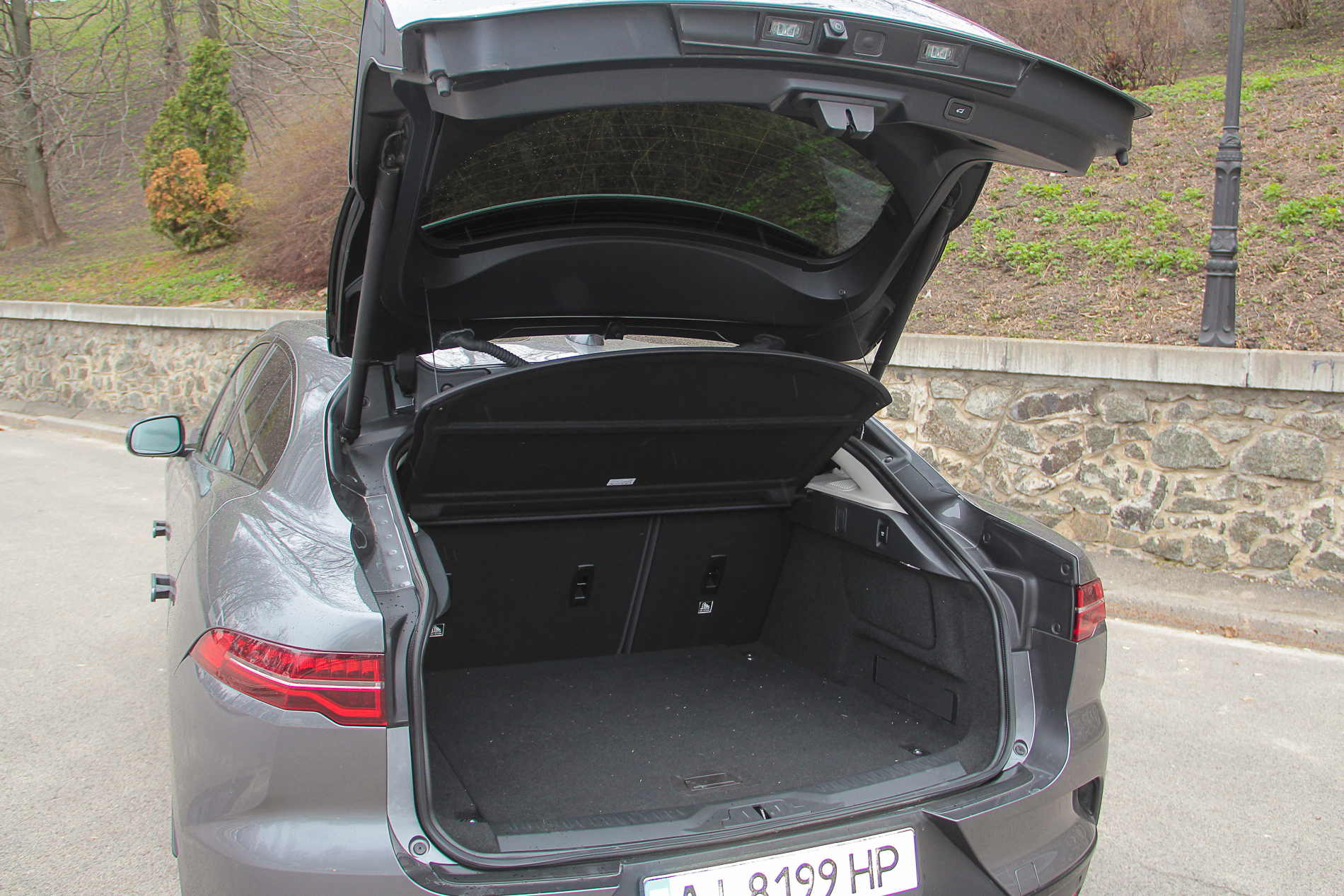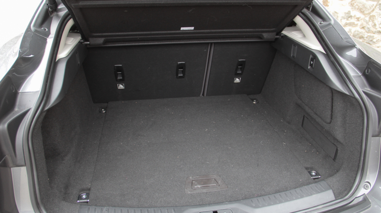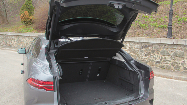 Само собой не забыли и про багажник. За внешней визуальной компактностью на самом деле скрывается немаленький отсек объемом 656 литров. “Трюм” широкий и глубокий, плюс есть возможность увеличить его вместимость, сложив спинки заднего дивана. Под массивным фальшполом небольшая ниша для разной мелочевки, но, конечно же, запаской здесь и не пахнет – только ремкомплект. Взгляните на техническую схему Jaguar I-Pace ниже по тексту и вы поймете почему. Есть небольшой отсек и под капотом электромобиля, но он предназначен исключительно для зарядных кабелей.