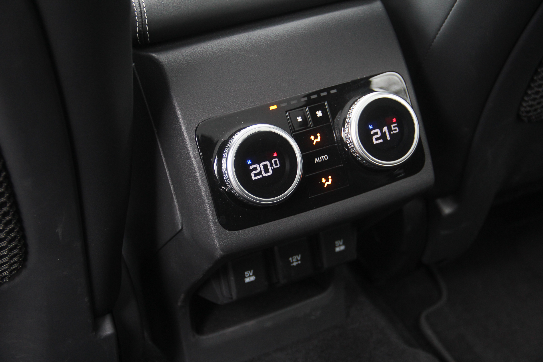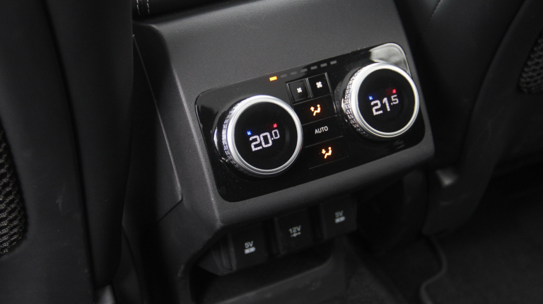 А что там для задних пассажиров? Посадка слегка “поджата” задней колесной аркой, но на самом диване до впередистоящей спинки места с очень большим запасом – просторно! У задних пассажиров не просто свои дефлекторы обдува в стойках, а двухзонный климат-контроль. Вдобавок USB-входы для подзарядки на 5V (до этого встречал встречал только 2V) и гнездо на 12 V (“прикуриватель”).