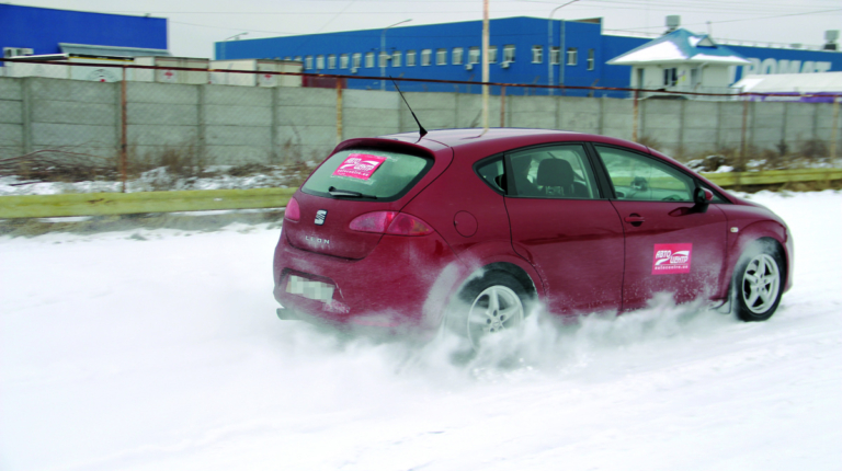 Испытания проводились на столичном автодроме Чайка в два этапа. На первом мы протестировали шину на снегу и льду, а на втором этапе, когда сошел снег, провели тест на сухом асфальте. На каждом покрытии было проведено по два вида тестов, в которых проверялись тормозные свойства и управляемость.