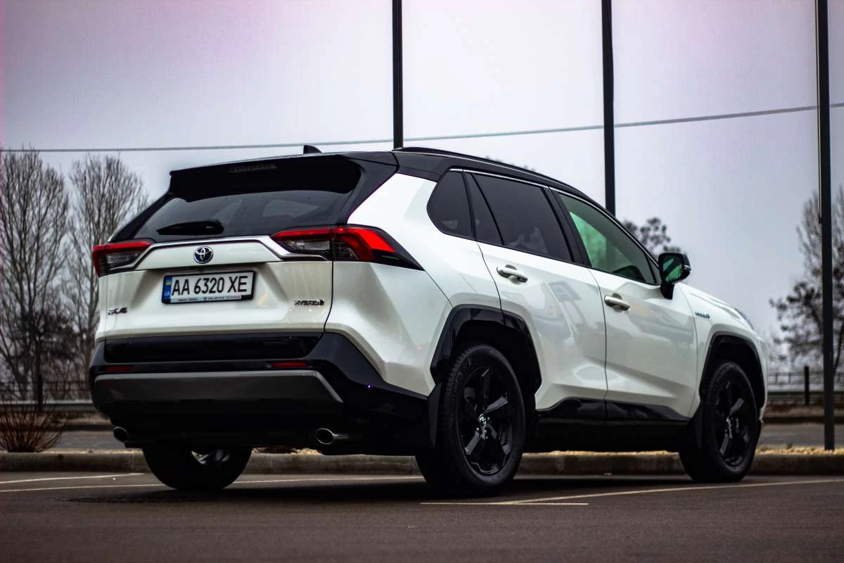 Близько до них за компоновкою Toyota RAV4. Вона так сильно не схожа на свого попередника не тільки зовні. Виразні форми та міцний характер неначе проступають міцними м’язами під поверхнею металу кузова. Але під ним приховуються ще й сучасна гібридна силова установка з бензинового двигуна та електромотору.