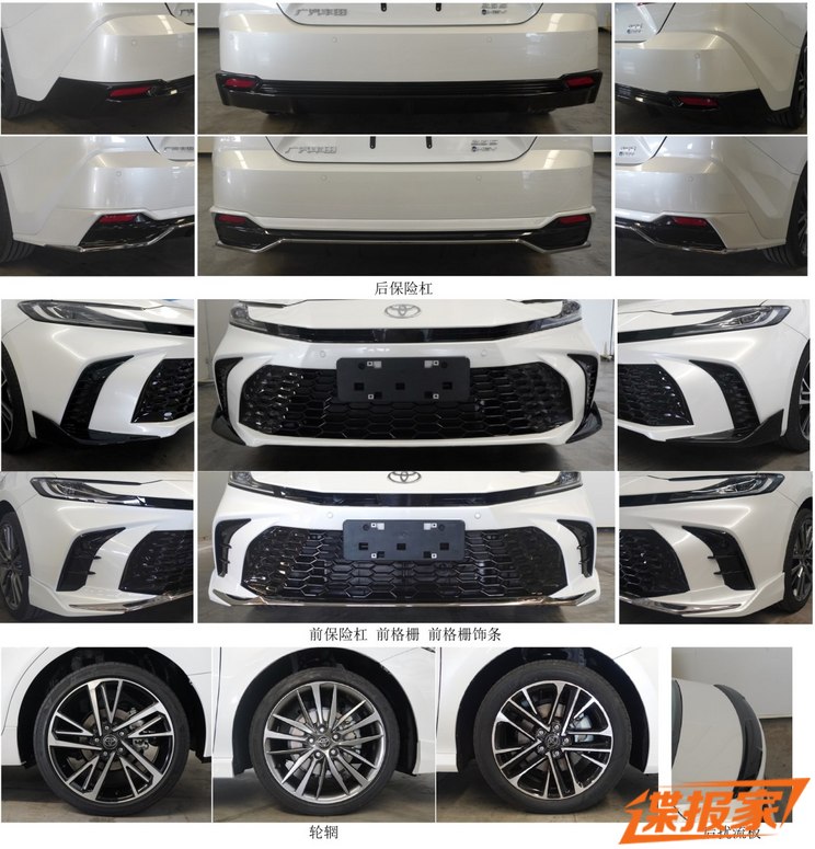 Інформацією про новинку поділилося Міністерство промисловості та інформаційних технологій КНР. Відомо, що нова Camry досягає завдовжки 4950 мм при колісній базі 2825 мм. Ширина та висота дорівнюють 1850 і 1450 мм відповідно. Популярна модель отримала С-подібні задні ліхтарі та спеціальні колісні диски.