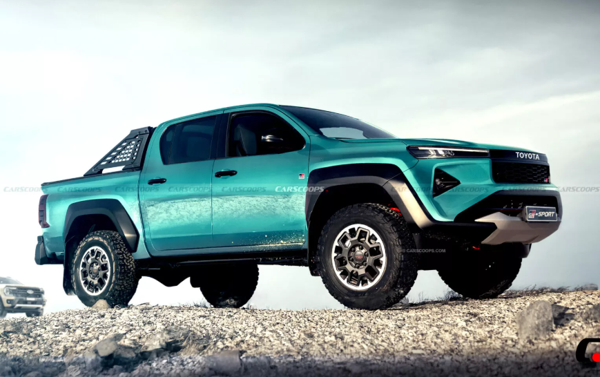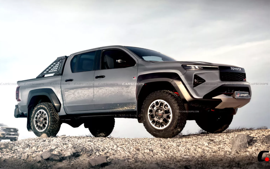 Пікап Toyota Hilux GR Sport був розроблений як відповідь Ford Raptor та користується високим попитом на ринку. У компанії впевнені, що оновлена модель ще більше зміцнить позиції в сегменті. Відомо, що пікап збереже свою рамну платформу IMV, а не перейде на більш нову TNGA-F, яку використовує Tacoma. Однак екстер’єр стане більш сміливим. Він отримає вузькі світлодіодні фари, кутасту решітку радіатора з сотовим наповненням, передній бампер з масивною захисною пластиною, розширені крила, а також темні накладки на колісні арки.