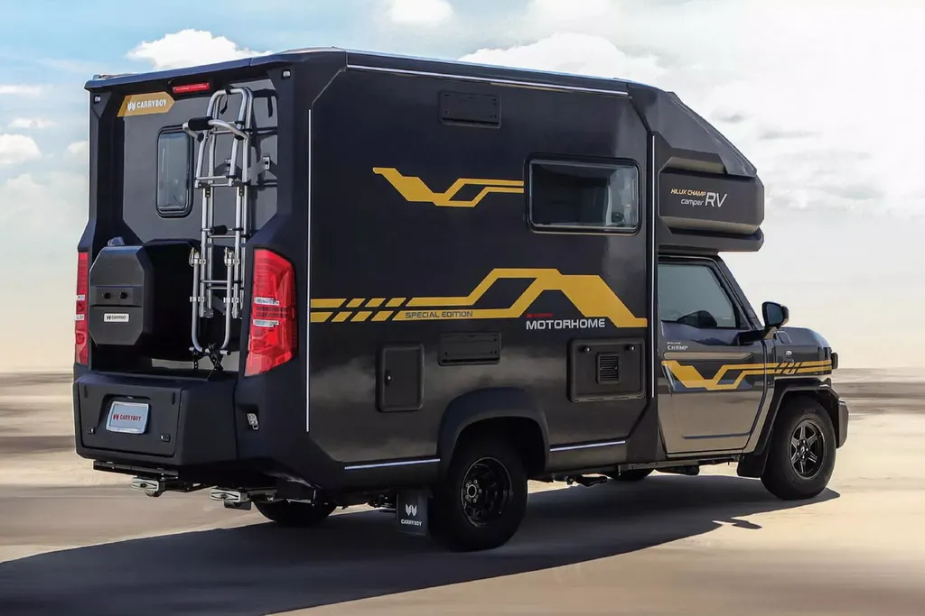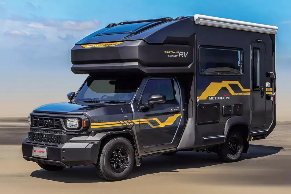 Тайська компанія Carryboy підготувала оригінальний кемпер альковного типу на шасі популярного пікапа Toyota Hilux. Будинок на колесах здатний розмістити на нічліг до 6 осіб, а комфорт їм забезпечать невелика ванна кімната, їдальня та телевізор діагоналлю 32 дюйми.