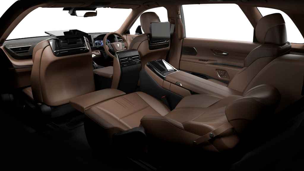 У список оснащення оновленого Century також входять електричні висувні столики та допоміжні ручки, антибактеріальні поверхні, гачки для одягу і навіть тримачі для взуття. Також інтегровано нове фонове освітлення, а сидіння оснащені висувними спинками і підставками для ніг, які розкладаються в повністю горизонтальне положення. Ще пасажири другого ряду отримують власну панель управління та мультимедію з окремим екраном. Вони пов’язані з аудіосистемою преміум-класу з 18 динаміками.