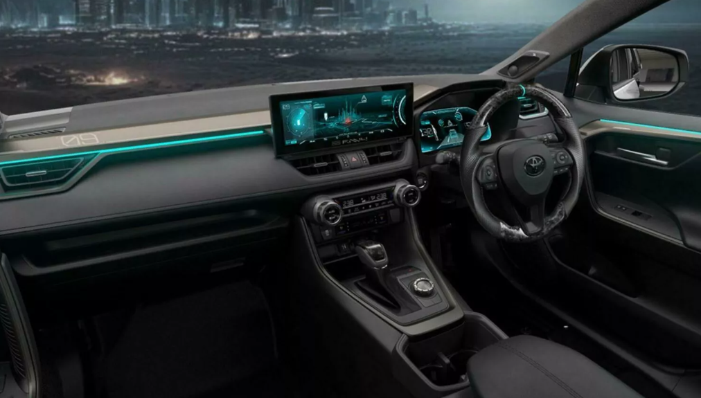 Салон популярного кросовера також доопрацювали. В оснащення включили цифрову панель приладів і мультимедійну систему з футуристичною графікою, додали особливе підсвічування та нові матеріали в обробці. Інформації щодо силової установки RAV4 Dark Side немає, втім, як і даних, чи буде у нього серійне продовження.