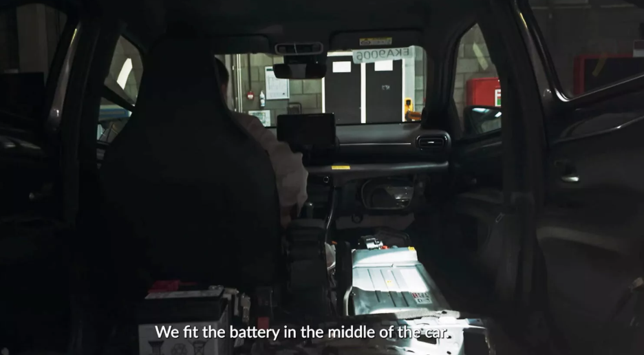 У салоні прототипу залишили тільки одне сидіння, водійське, а приладову панель також взяли у Yaris. А все тому, що Toyota на цьому мулі тестує першу самозаряжающуюся гібридну силову установку для автомобілів А-класу. Відомо, що оновлена Toyota Aygo X, яка дебютує в наступному році, замість 1,0-літрового двигуна отримає нову гібридну систему потужністю 114 к. с., яка поєднує у собі атмосферний 1,5-літровий двигун, електромотор та батарею.