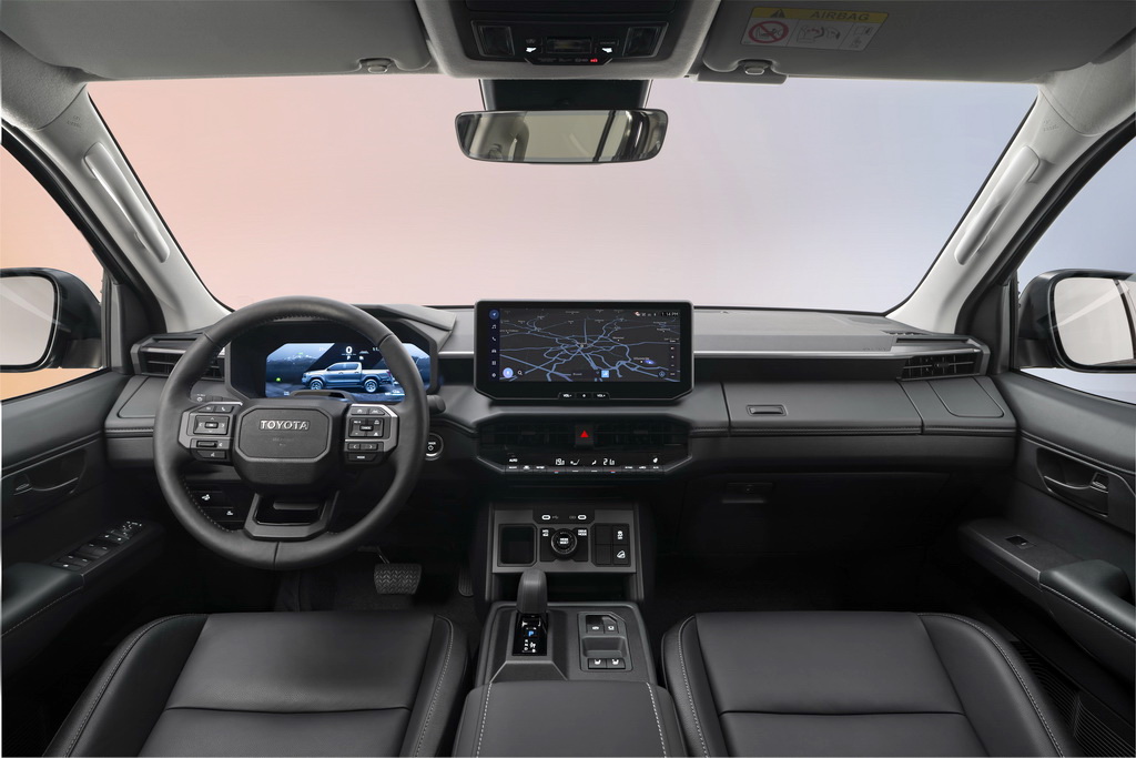 У новому поколінні Hilux буде лише один варіант кузова – Double Cab, з чотирма повноцінними дверима. Центральна консоль має новий дизайн з 12,3-дюймовим комбі-дисплеєм для водія, що настроюється, і центральним сенсорним екраном мультимедійної системи (до 12,3 дюйма). У задній частині салону передбачені бездротова зарядка та USB-порти. Всі органи керування повним приводом та позашляховими режимами згруповані централізовано для зручності експлуатації. Версія BEV оснащена однопозиційним селектором перемикання передач з електронним керуванням.