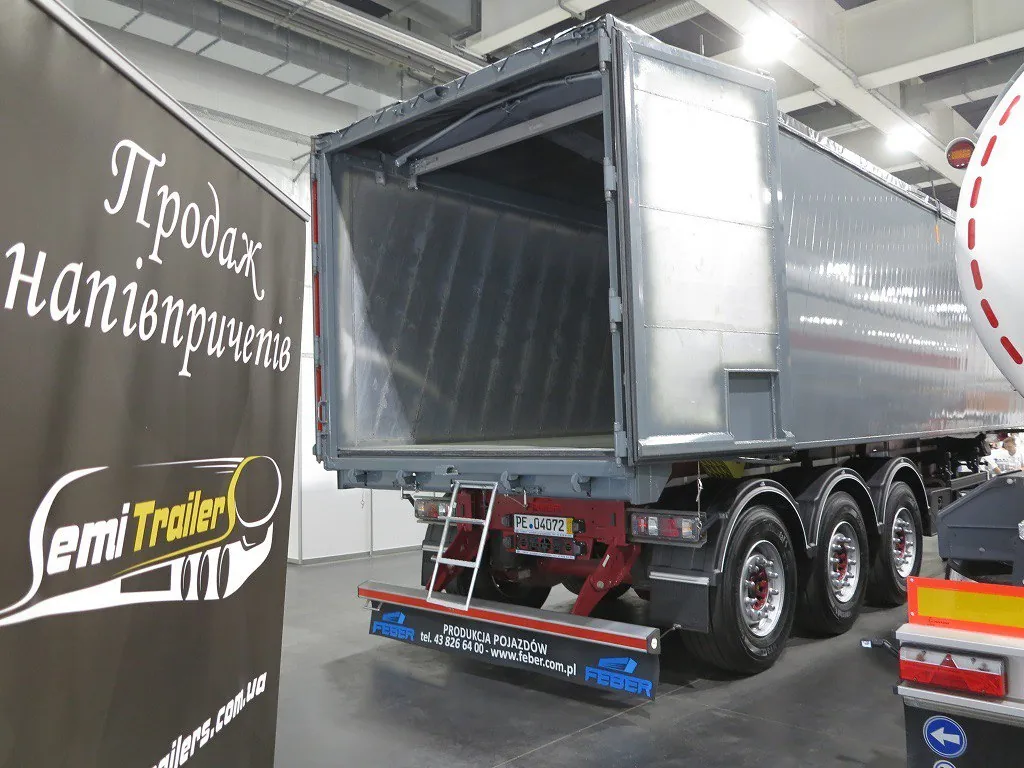 Компанія «ТРЕЛЕР Україна» нещодавно стала офіційним представником польського виробника самоскидних напівпричепів Feber. В Україні вони конкуруватимуть із технікою провідних європейських брендів - таких як Schmitz, Schwarzmuller, Wielton, Bodex тощо. На виставці можна було побачити зерновоз із 54-кубовим алюмінієвим кузовом, який вирізняється невеликою спорядженою масою – 6300 кг. Тут використано гідравліку Hyva та осі SAF. В асортименті Feber є також самоскидні напівпричепи для будівництва, з кузовом з високоміцної сталі Hardox.