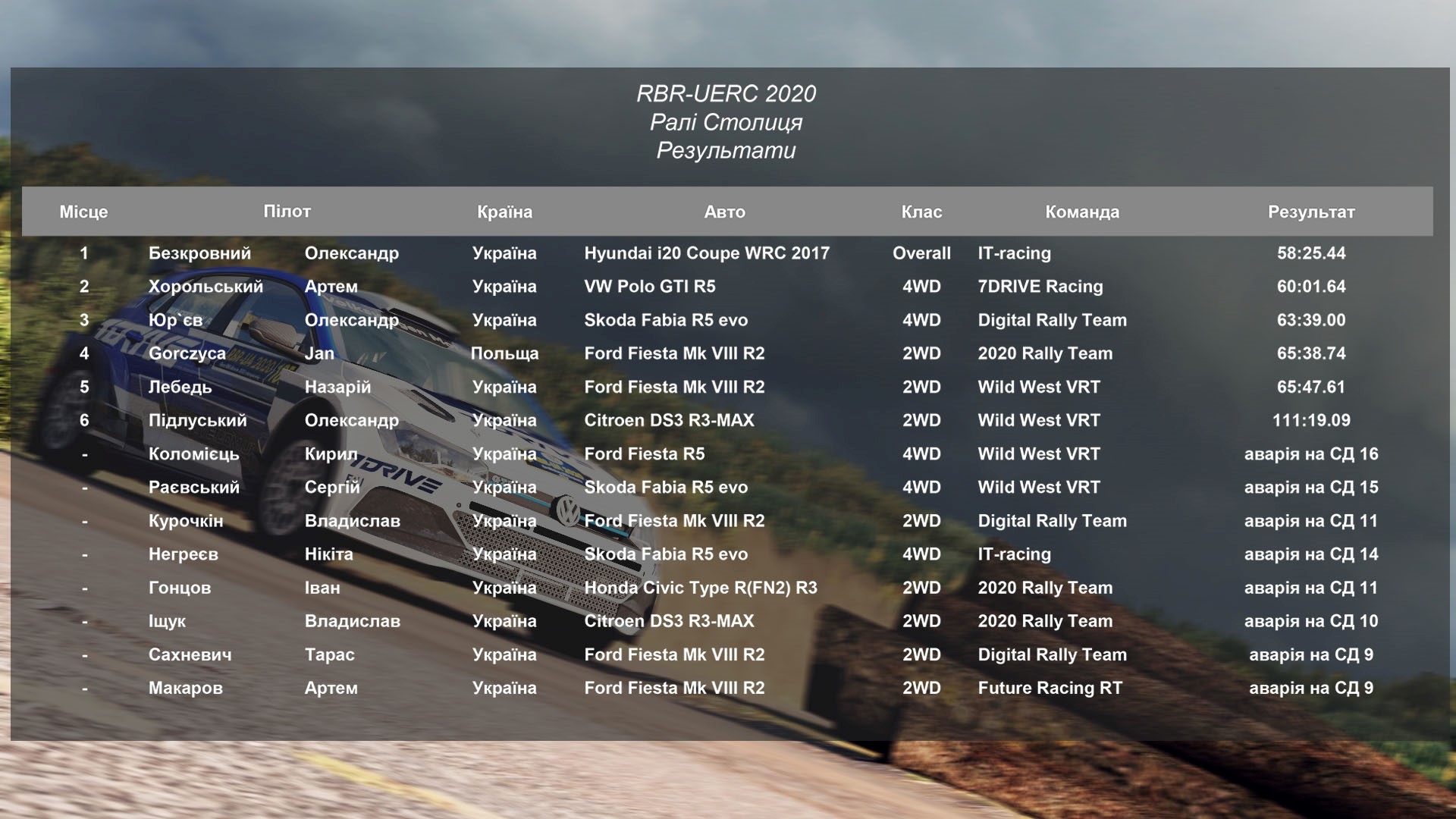 Поздравляем Призеров 5 этапа Чемпионата Украины виртуальному ралли !