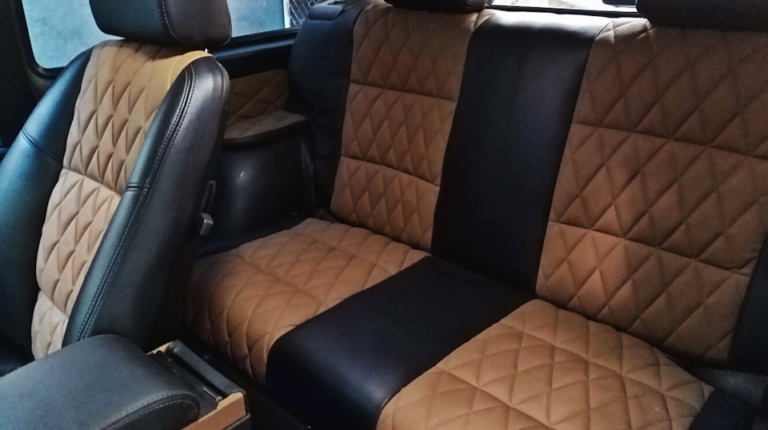 Еще больше впечатляет салон автомобиля. Во многом это заслуга новой передней панели от фирмы АПС под названием «Comfort». Передние сиденья – очень удобные от «трешки» BMW серии E36, в них вмонтировали подогрев от Приоры и перешили.