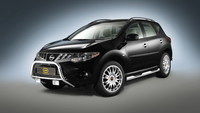 К ней предлагается пара дополнительных фар в хромированных корпусах. К нижней части переднего бампера крепится более сдержанная дуга Cobra N+ Cityguard в паре с полированной решеткой-грилем из нержавеющей стали. Боковые пороги надежно укрыты стальными порогами (с интегрированными подножками) из трубы диаметром 80 мм. На двери наклеены специальные резиновые молдинги, предохраняющие кромки дверей от царапин и ударов на паркингах.