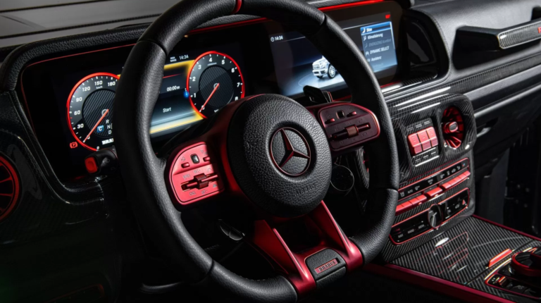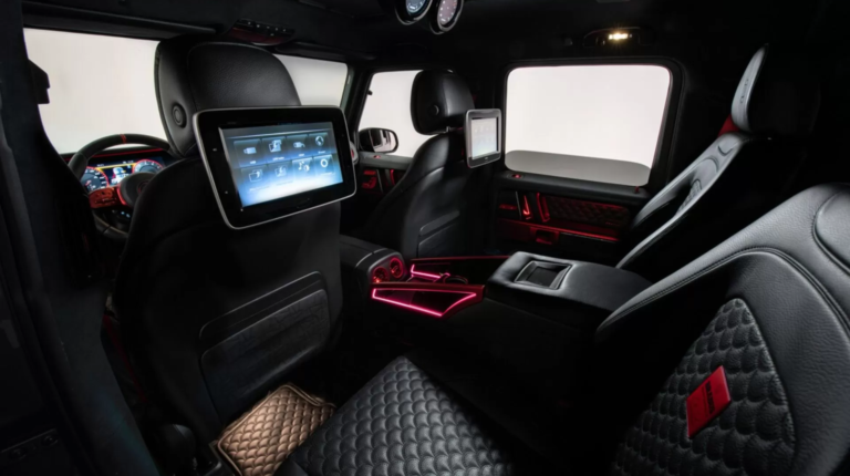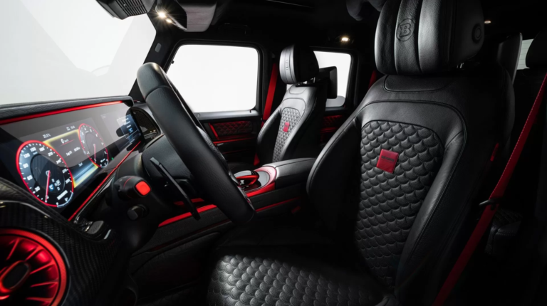 Чотиримісний салон оздоблений тонкою шкірою із простроченням Seashell Diamond та яскраво-червоними акцентами. Інтер’єр декорований вуглецевим волокном та логотипами тюнера з підсвічуванням. Також застосовано атмосферне амбіентне освітлення.