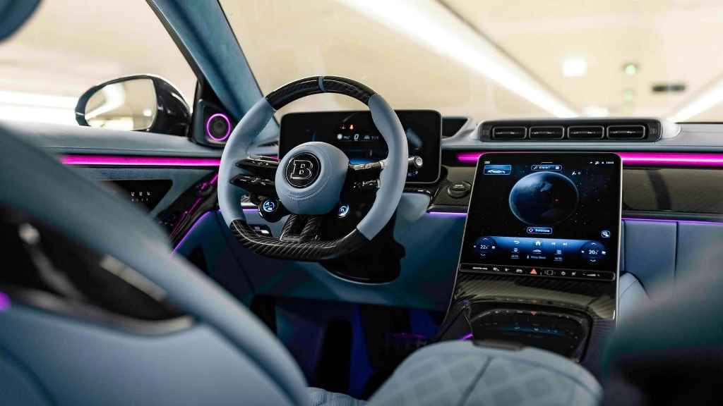 Салон седана оздобили високоякісною перфорованою шкірою з ромбоподібним рядком. Як акценти використовували карбон і безліч вишивок з логотипом тюнера. Ще є логотип Heritage та «77», які відсилають до дати заснування ательє у 1977 році. Вартість Brabus 930 починається від 405 тисяч євро.