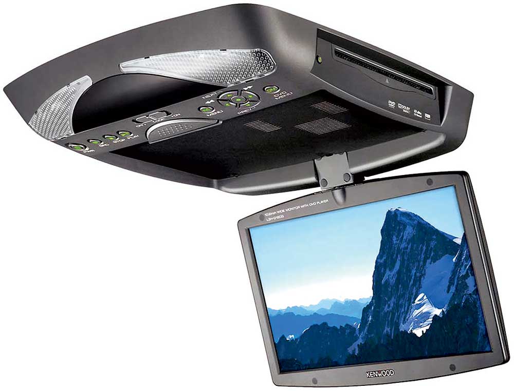 Этот DVD-плеер LZH-D120G от Kenwood специально предназначен для монтажа на потолке транспортного средства.