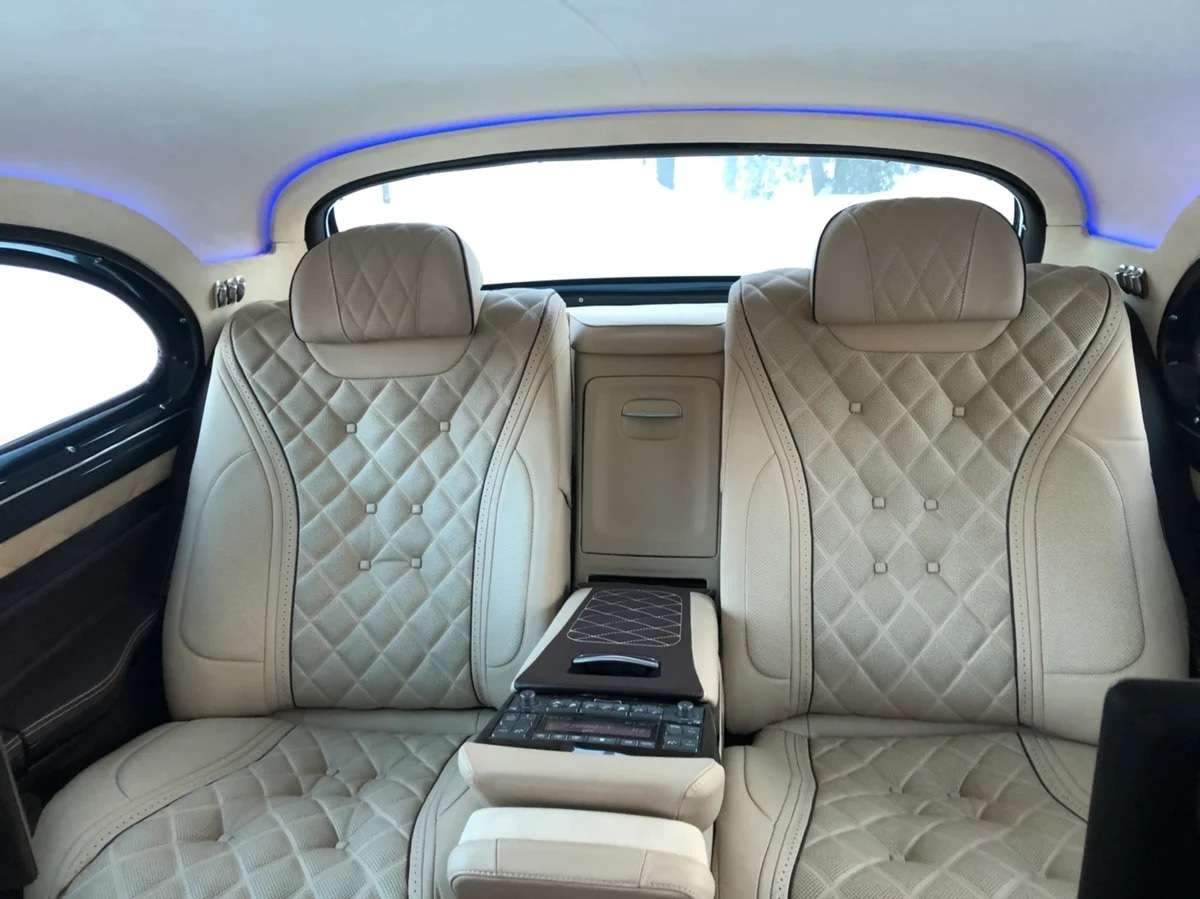 В салоне передняя панель и кожаные сиденья первого ряда с электроприводом перекочевали с Lexus LX570, а вот задние кресла – особые – с электроприводом, вентиляцией, массажем и выдвижными валиками под ноги. Установлена и пара мониторов.