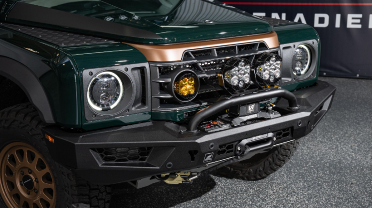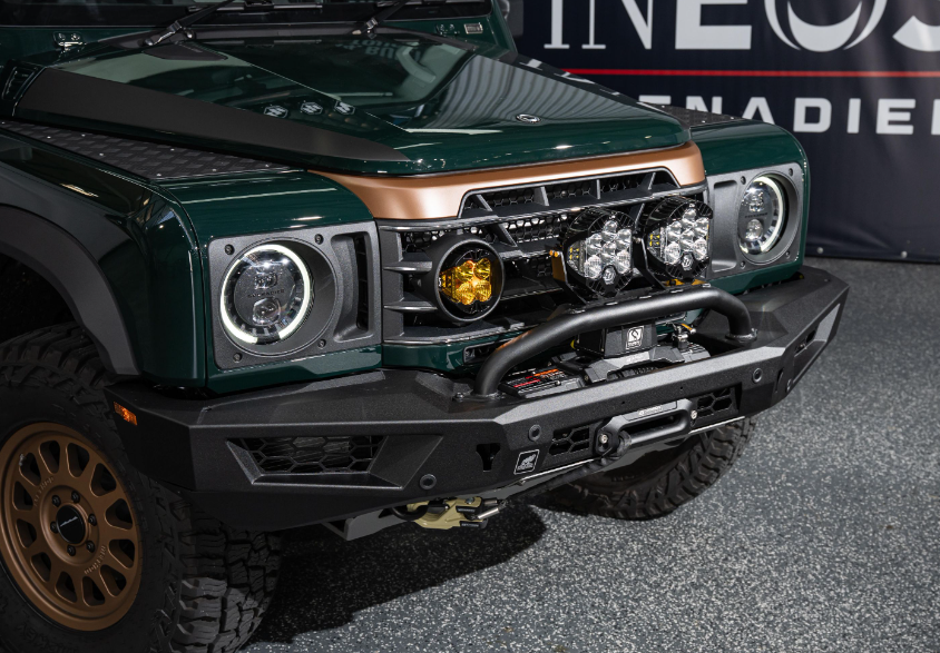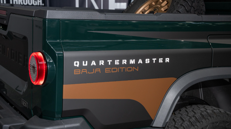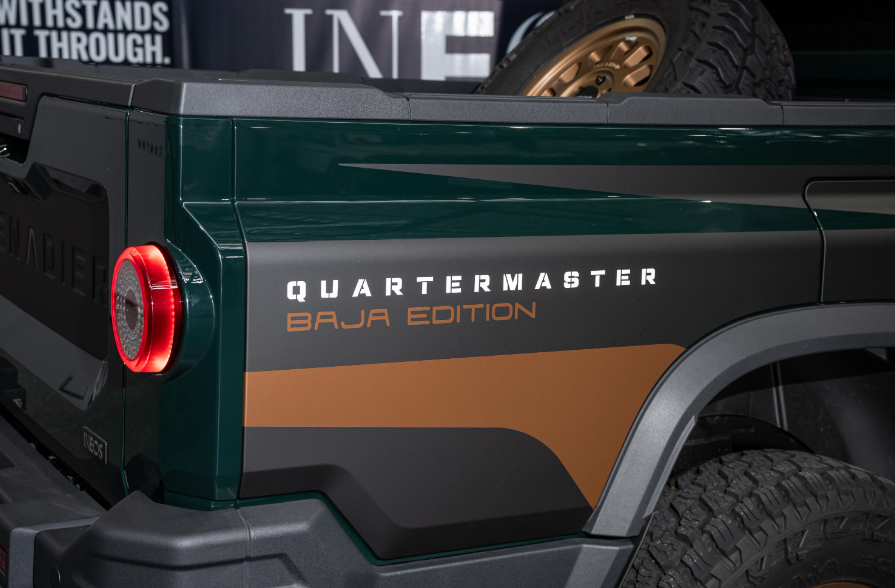 Кузов Ineos Greandier Quartermaster Baja Edition пофарбували в темно-зелений відтінок з бронзовими та чорними малюнками. Ще пікап оснастили новими колесами Method Race бронзового кольору, взутими у масивні шини підвищеної прохідності, і шноркелем Quartermaster на передній стійці з боку водія.