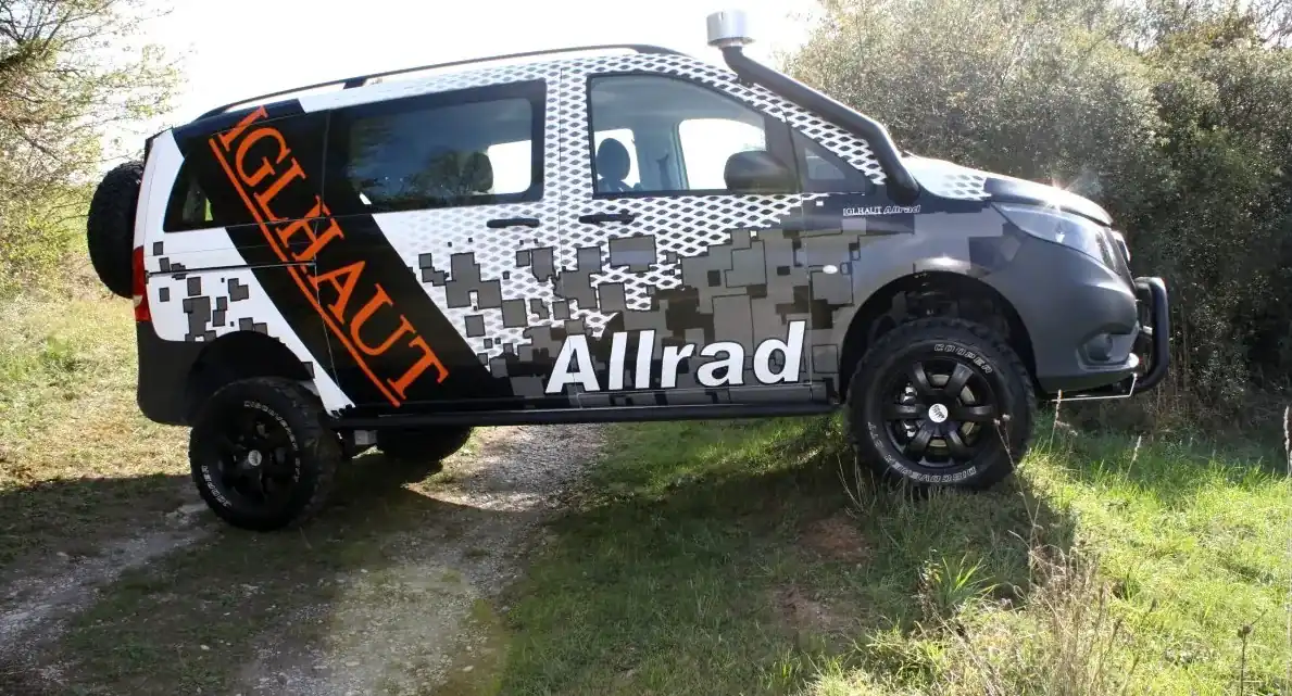 Сегодня в модельном ряду Mercedes-Benz есть два автомобиля, которым по силам самое суровое бездорожье – это всем известные Unimog и, конечно же, G-Class, он же Gelandewagen, он же «кубик». Однако для тех, кто желает продолжить этот список, немецкое специализированное ателье Iglhaut GmbH предлагает доводку популярных развозных фургонов – Mercedes-Benz Vito и Mercedes-Benz Sprinter. Машины имеют привод на все колеса, усиленную подвеску, по заказу устанавливается алюминиевая защита снизу, стальные трубы по периметру, шноркель и многое другое.