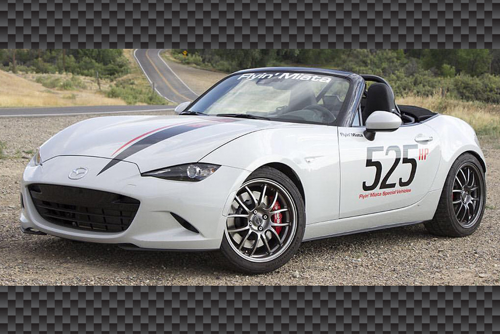 Фахівці тюнінгового ательє Flyin’ Miata представили перший екземпляр дорожньої версії Mazda MX-5 у якого стоковий двигун замінили 6,2-літровим восьмициліндровим агрегатом LS3 концерну General Motors, який використовується на спорткарах Chevrolet Corvette і Camaro.