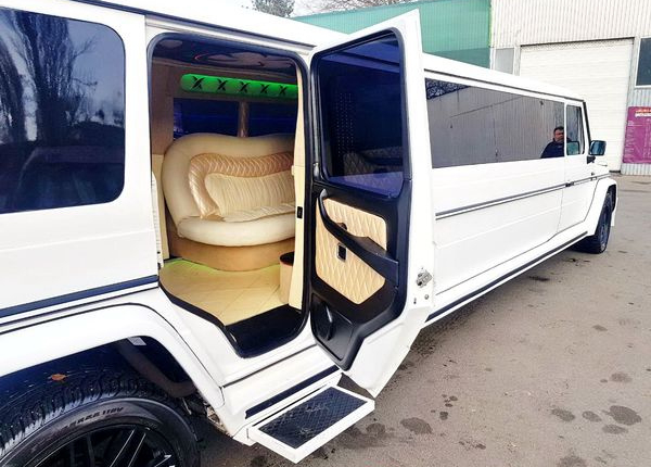 В заголовке вовсе не опечатка и это не шутка. В Киеве можно взять напрокат уникальный 20-местный лимузин Mercedes-Benz G-Class. Машина почти в два раза длиннее стандартного «кубика» и в два раза тяжелее – снаряженная масса почти 4 тонны.