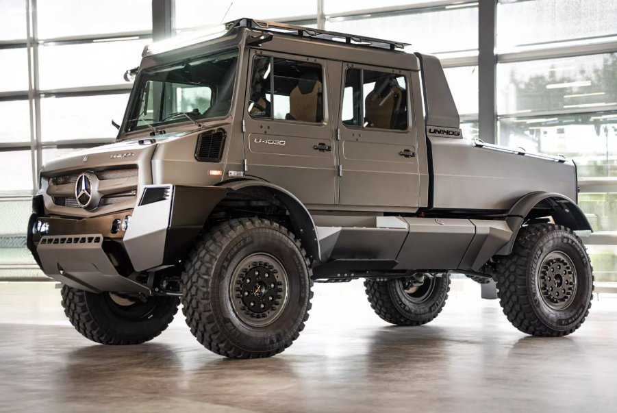 Створена спецверсія у співпраці з компанією Hellgeth Engineering. В її основу ліг Unimog у версії U 4023 з дворядною кабіною, портальними осями і гнучкою рамою. Його перетворили в пікап з місткою вантажною платформою. Також встановили нову решітку радіатора, бампери і бічні пороги. А панелі кузова виготовили на замовлення і пофарбували в матово-сірий відтінок.