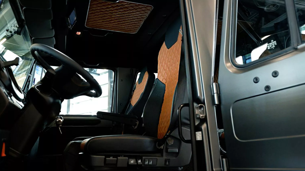 Обробку виконали з двоколірної високоякісної шкіри, яку доповнює контрастна строчка. Також встановили нові сидіння і додали фонову підсвітку. У рух ювілейний пікап призводить новий 7,7-літровий шестициліндровий дизельний двигун OM 936. Його віддача складає 297 к. с.