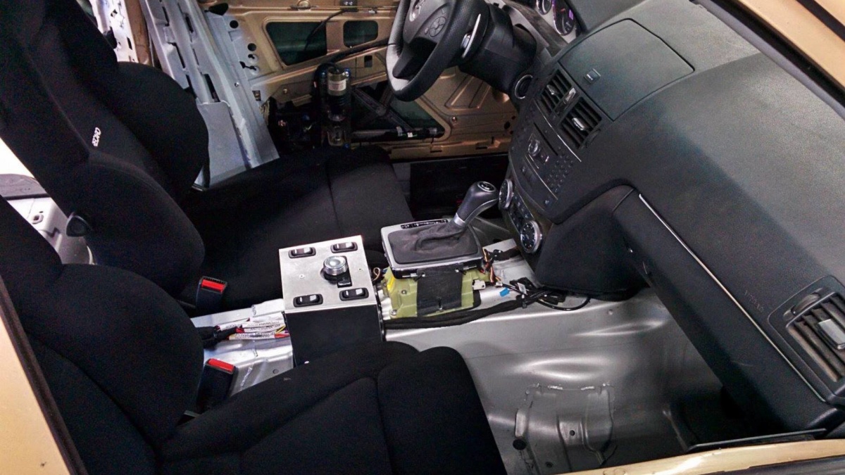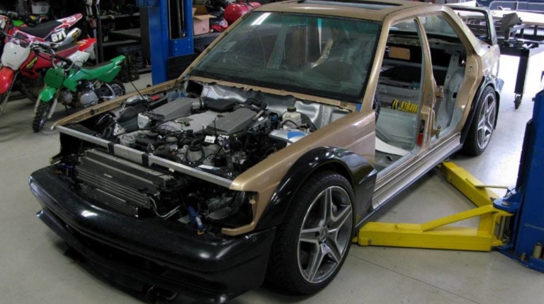 Переделка Мерседес 190 заняла пять лет. Шасси Mercedes C63 пришлось немного укоротить и серьезно переделать. Зато теперь седан Мерседес оснащен 6,3-литровым 457-сильным V8 и 7-ступенчатым автоматом.