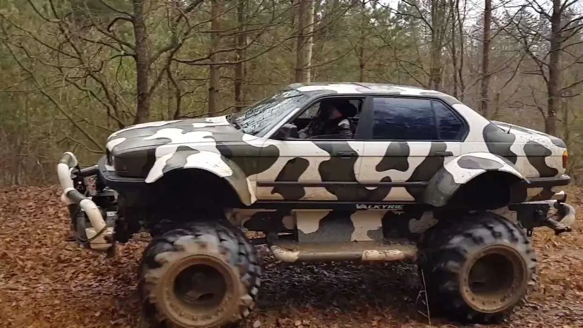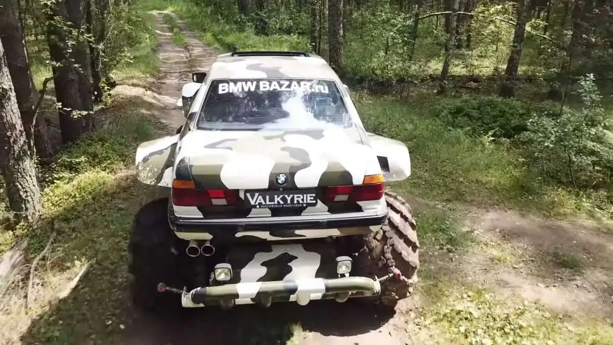 Напомним, что это чудо техники сотворили в тюнинговом ателье VBS Motor, которое специализируется на переделках баварских машин. Получился весьма оригинальный бигфут – с кузовом BMW 7 Серии (Е32) и ходовой от ГАЗ-66. Отсюда и название машины – BMW Valkyrie 766 4x4.