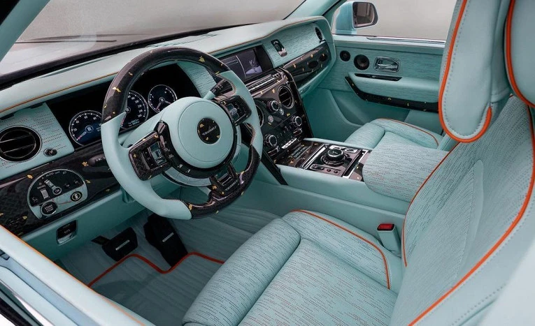 Із оформленням кузова перегукується й оздоблення інтер'єру. Для салону тюнери використовували бірюзову шкіру із помаранчевими акцентами та чорний декор, інкрустованим сусальним золотом.