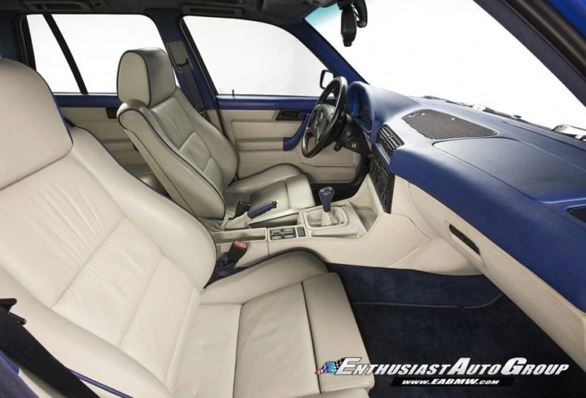 BMW M5 E34 Santorini Blue, випущений у грудні 1994 року, наразі має пробіг 153,9 тис. км. Однак це не так вже й багато, якщо врахувати, що після пробігу 143 тис. км машину капітально реставрували від двигуна до ходової. Тепер заряджений універсал як новий. У салоні - ніжна біла шкіра Lotus White, під капотом - 3,8-літрове «гаряче серце». І весь цей скарб може летіти трасою зі швидкістю до 180 миль на годину - 288 км/год. Універсал Santorini Blue продається за ... 129 900 доларів.
