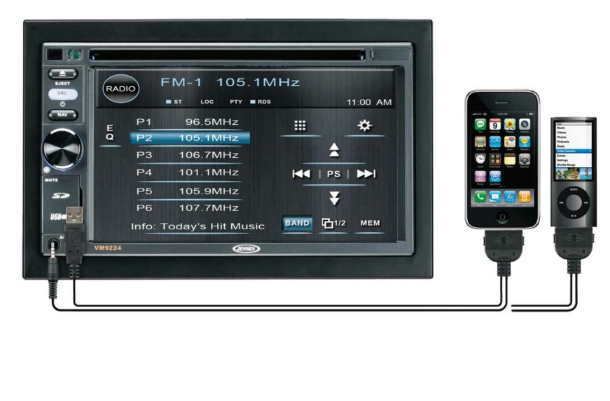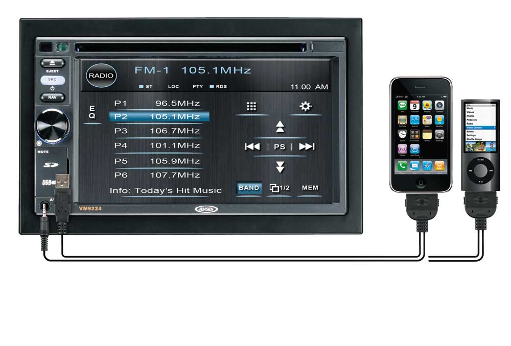Возможности мультимедийного ресивера Jensen VM-9224R так же велики, как и его двухдиновый размер. Воспроизводится целый список форматов, причем не только с дисков, но и с накопителей USB и SD-карт. Есть на лицевой панели и вход AV AUX для быстрого подключения портативных устройств. FM/AM-тюнер оснащен блоком отображения информации по каналу RDS. Есть вход для камеры заднего вида и аудиовыход на внешний усилитель. Пока довольно необычно, что устройство отнюдь не премиум-сегмента позволяет подключить внешний модуль навигации. К VM-9224R можно также подключить внешний модуль Bluetooth с функцией Hands-Free. Ресивер поддерживает прямое подключение iPod, что позволяет воспроизводить музыку и видео, управлять iPod с сенсорной панели ресивера или ПДУ. В комплект поставки нового головного устройства входит пульт дистанционного управления типа «карточка». Стоимость 2 300 грн.
