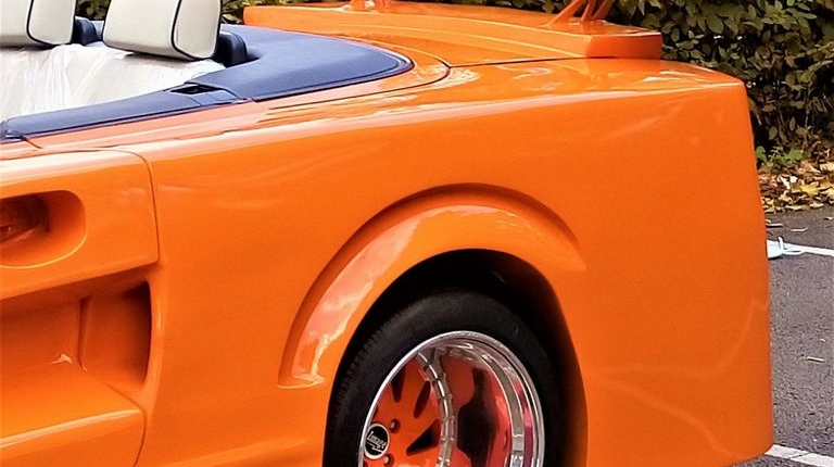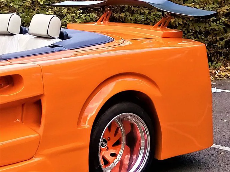 Также заменены капот и фонари, а сзади появилось немаленькое антикрыло. Усиливает впечатление ярко-оранжевый окрас кузова и колесных дисков.