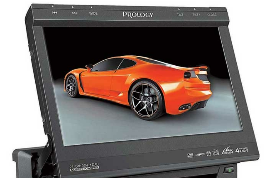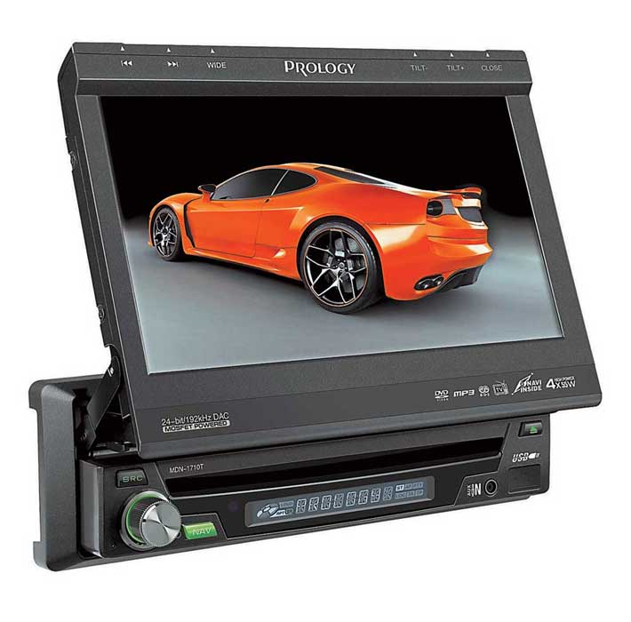 Конструкторы Рrology уместили в формат 1DIN мультимедийное головное устройство MDN 1710T с жидкокристаллическим экраном диагональю 7 дюймов и встроенным модулем навигации. Монитор у этой «головы» – с электроприводом, интерактивной сенсорной панелью управления и графическим интерфейсом. CD-привод читает файлы DVD, CD, MP3, MPEG4, JPEG, Giga MP3, есть интерфейс USB, гнездо AUX и возможность превращения «головы» в телевизор путем подключения ТВ-тюнера. Расширяют недюжинные коммуникационные возможности аппарата аудио/видеовход, видеовыход и 4,1-канальный аудиовыход. На моторизованный экран можно выводить изображение с камеры заднего вида, для которой также предусмотрен отдельный вход. Стоимость 4 280 грн.