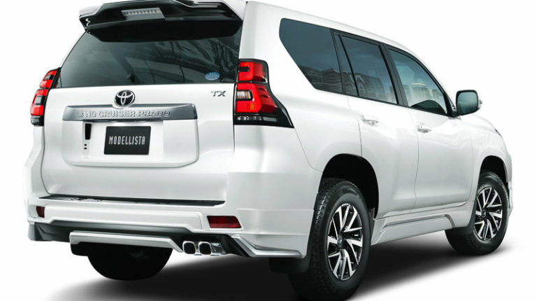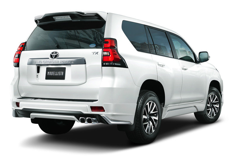 Тюнинг-кит для Toyota Prado от Modellista подороже – 432 тыс. иен (около 4000 долларов). Помимо обвеса, он включает спойлер на крышу, сдвоенные выхлопные трубы и выдвижные подножки.