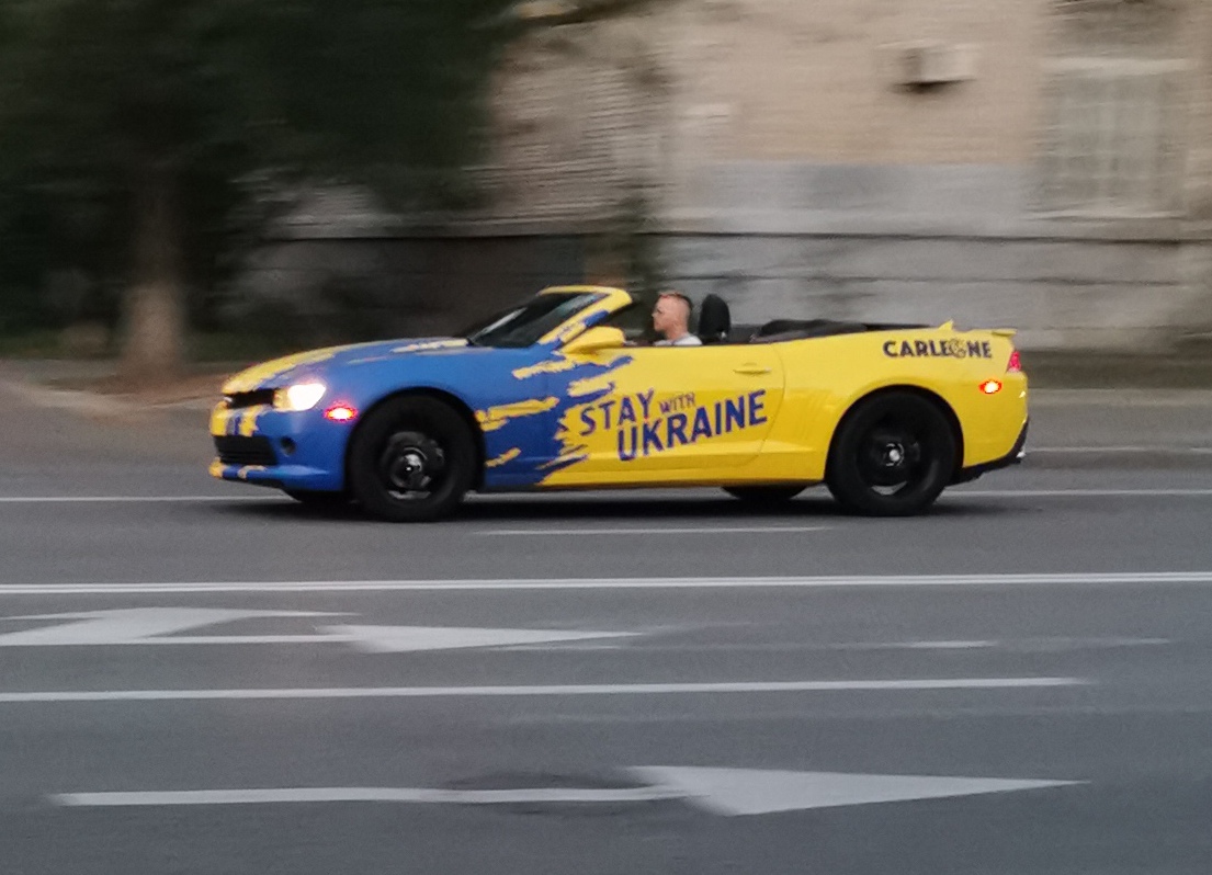 У цей непростий час дуже важлива підтримка патріотичного духу, який допоможе нам, українцям вистояти в боротьбі з російськими окупантами. І не випадково сьогодні у автомобілістів стала ще більш популярна національна символіка. На багатьох машинах можна побачити жовто-блакитні елементи – стрічки, прапорці, шторки та ін. А ось власник цього muscle car – кабріолета Chevrolet Camaro вирішив пофарбувати всю машину в колір нашого прапора. Більше того, на дверях він завдав напис Stay with Ukraine («Залишайся з Україною»).