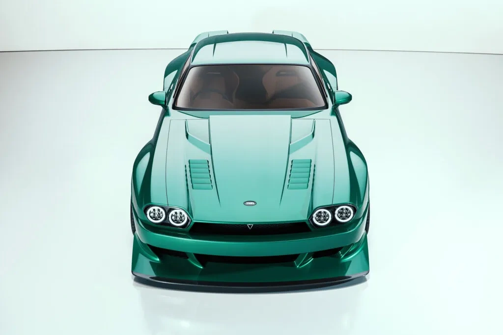 Рестомод отримав виразний аеродинамічний кузовний обвіс та кастомні карбонові колісні диски. Зокрема, у автомобіля широкі квадратні колісні арки та великий «качиний хвіст» на кормі. Знамениті аркбутани базового XJS сусідять із сучасною світлодіодною оптикою та збільшеним спліттером. Доповнюють новий образ великий дифузор та бічні вихлопні патрубки перед задніми колесами.
